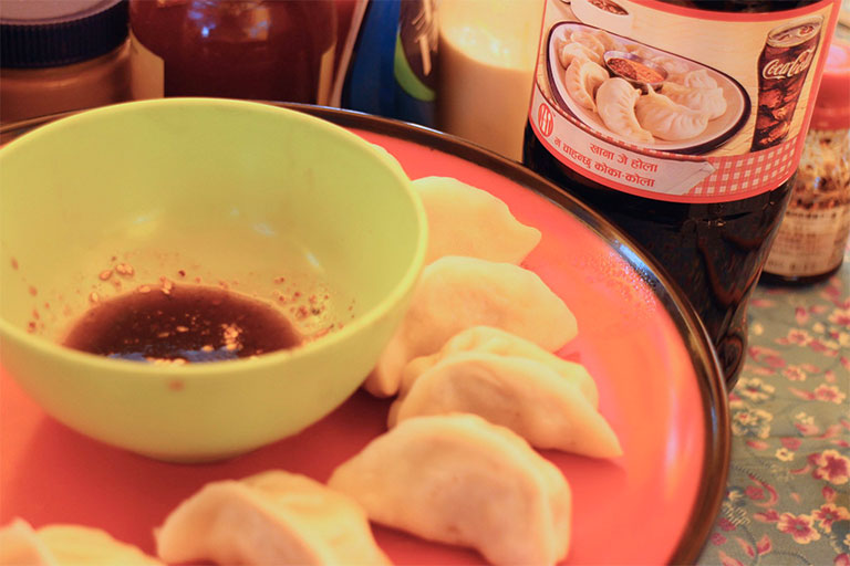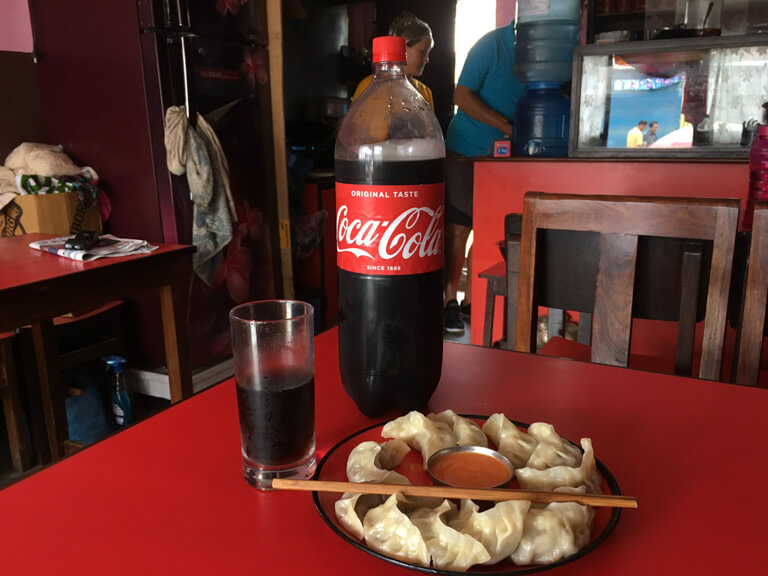 カトマンズに着いたら、先ずはモモ!さらに、追いモモにコーラ!