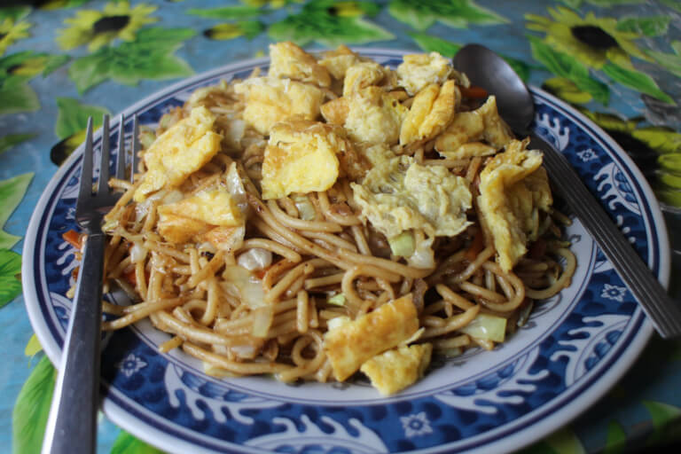 ネパールのローカルフード「チョーメン」焼きそばです。トレッキングロッジでの人気メニュー!どこのロッジで食べてもあまりハズレ無し。