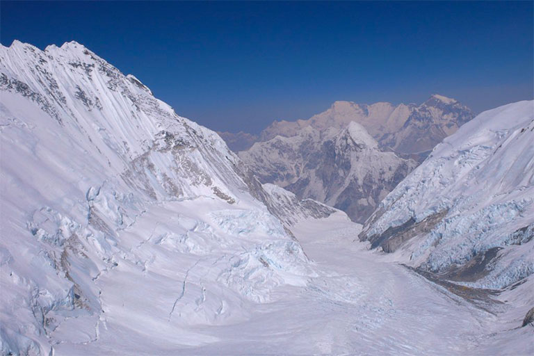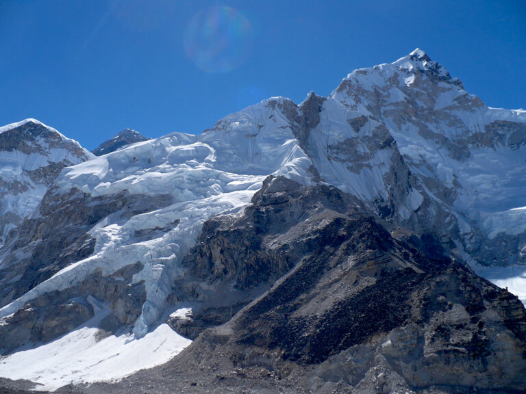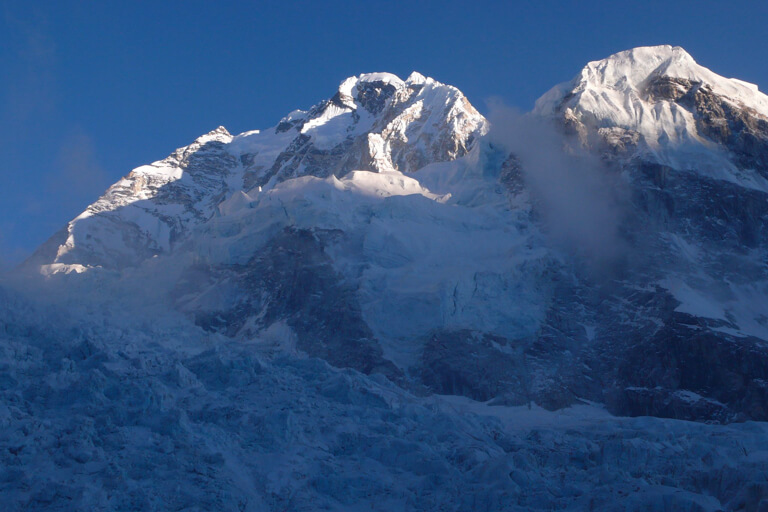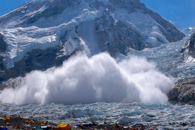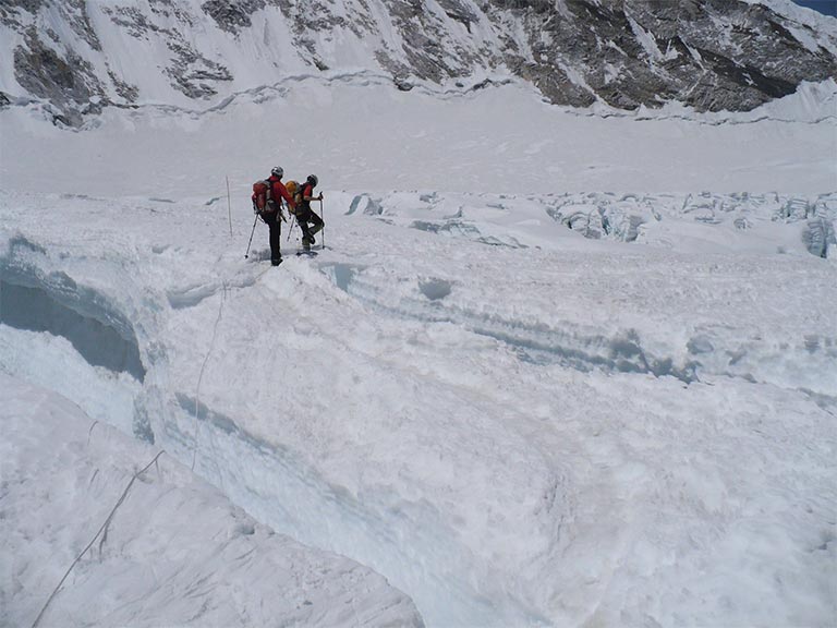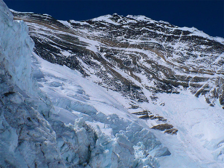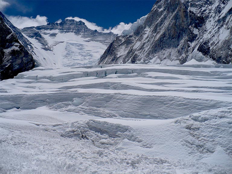 アイスフォールの名の通り、氷が滝となって動き続けていて、常に崩れてる。
