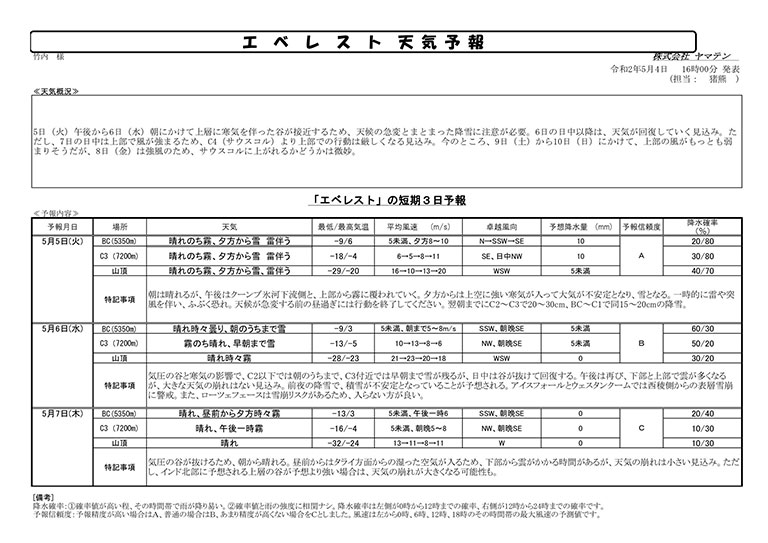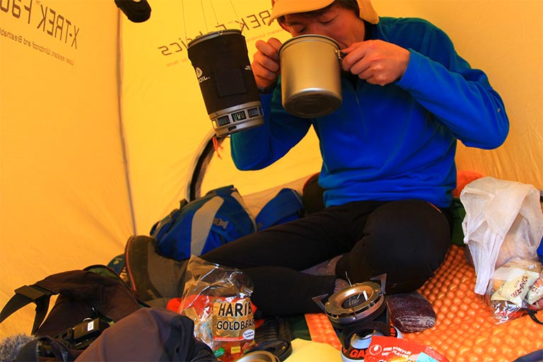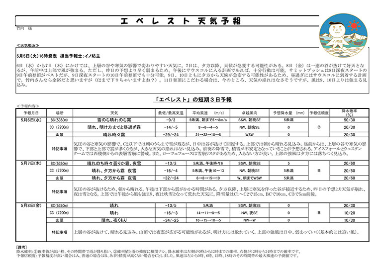 - 竹内洋岳よりC4に無事到着(妄想)との連絡が入りました!この後、天候悪化の予報(本当)がでているので一気にC2まで高度を下げていくようです。
