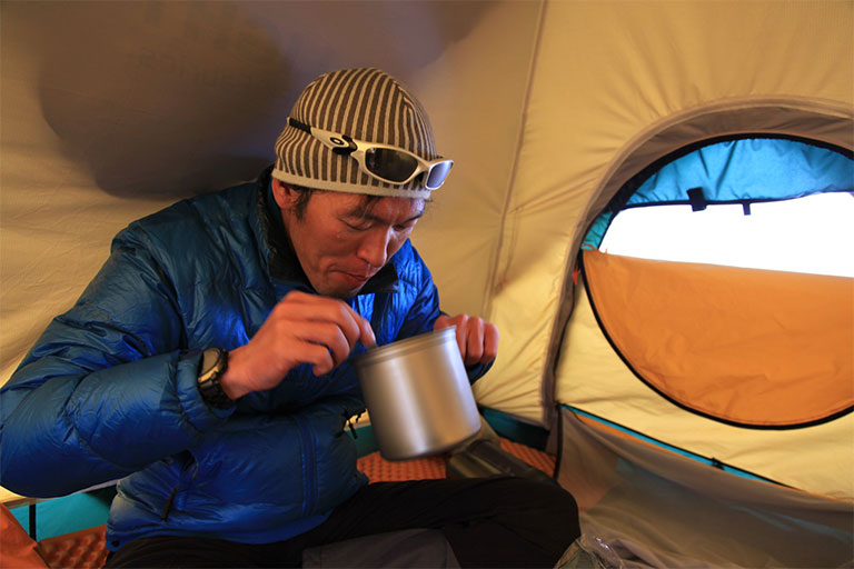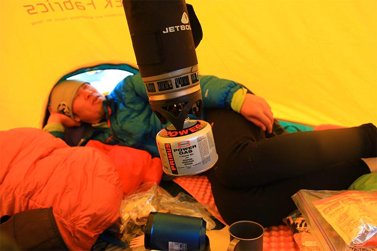 まずは、シェルターであるテントを死守!そのための除雪などで外に出なくではならないときは、いかに最短時間、最小労力で済ませられるか、少ない回数で効果的にできるかを考えて、しっかり準備して体力を温存しよう。