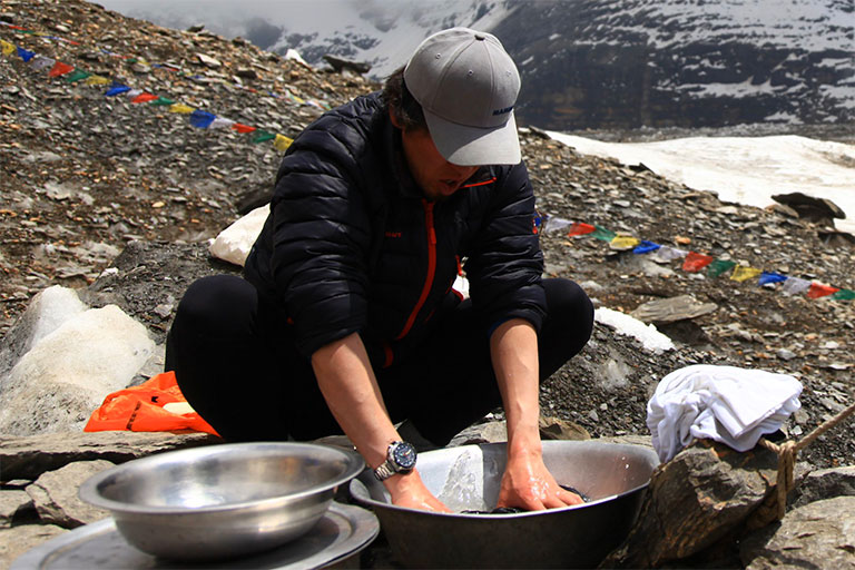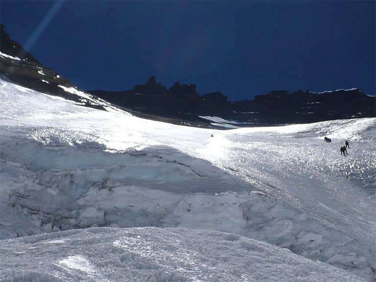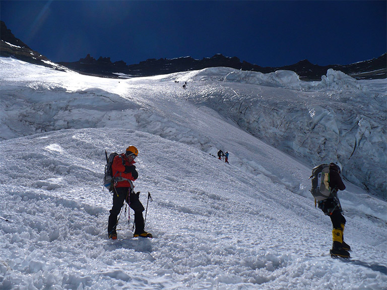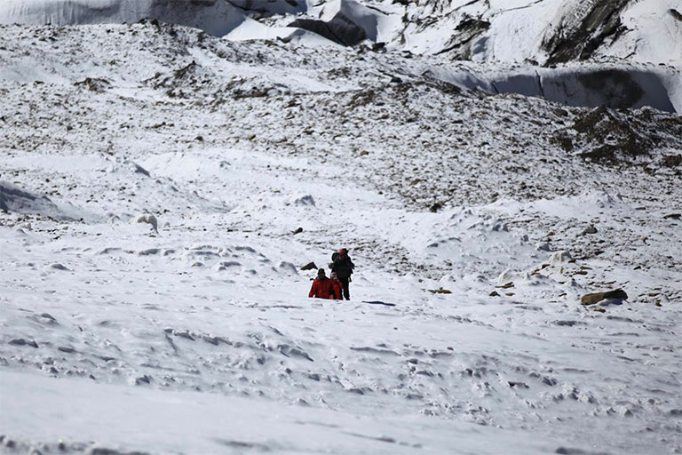 早朝にC2を出てベースキャンプに向かいます。