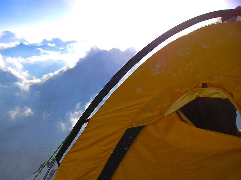 これから天気が崩れるだけでなく、気温が上がって、アイスフォールが緩む前に抜けたい。